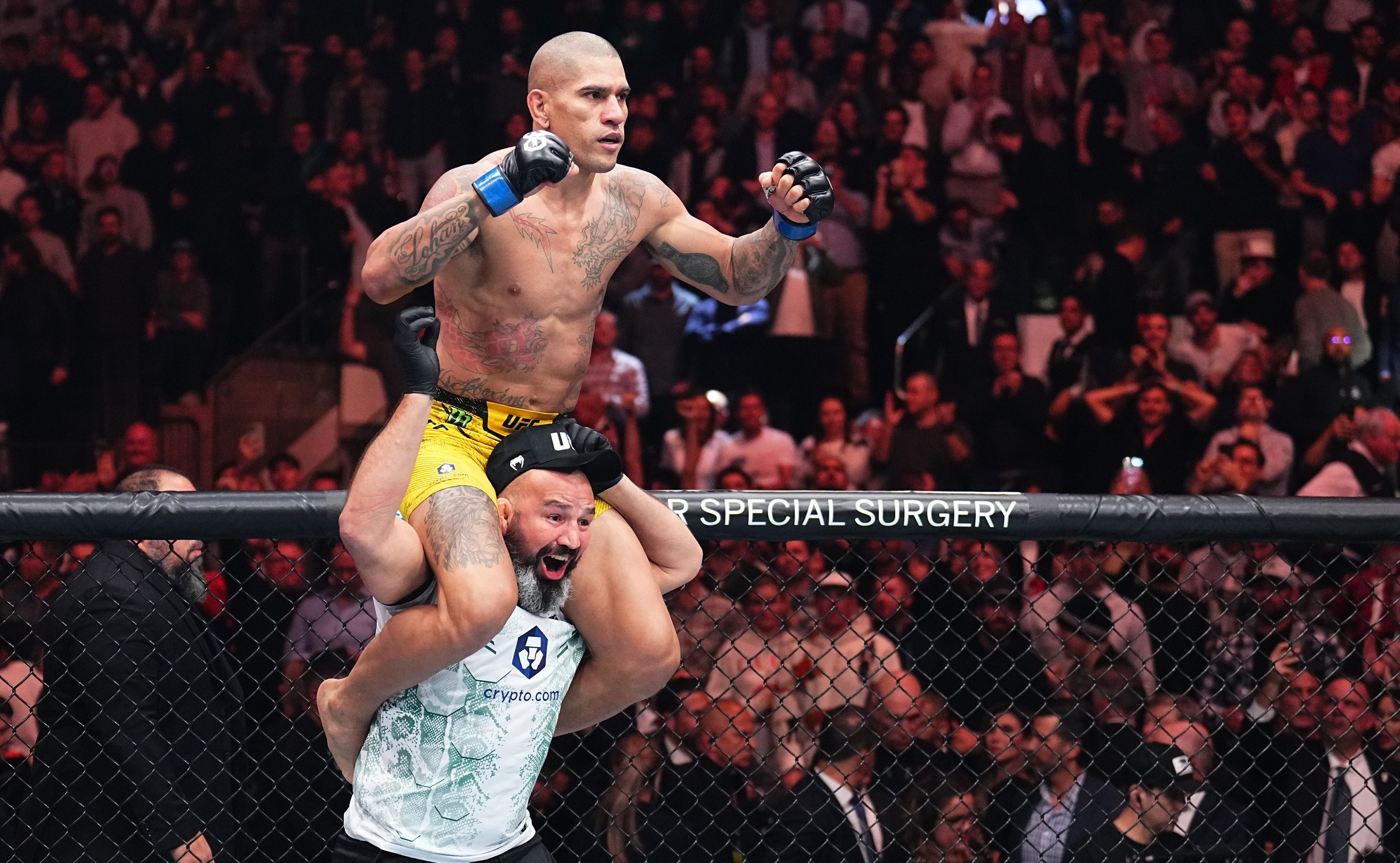 Alex Pereira vence por KO en el segundo asalto a Jiri Prochazka y se proclama campeón del peso semipesado. El checo se mostraba dominante y presionaba al brasileño, pero este le iba desgastando con sus low kicks. Con una izquierda lo mandó a la lona, donde le castigó hasta que el árbitro paró el pleito.