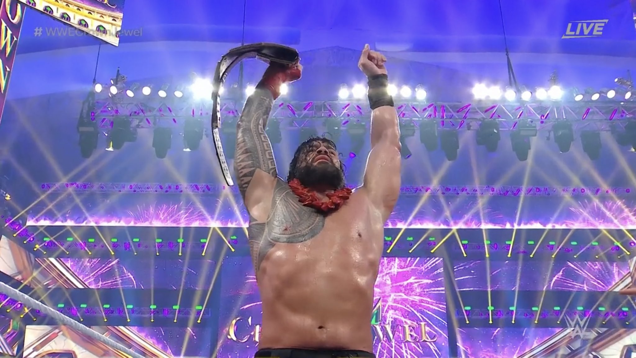la entrada de Jay White, este exige que anuncien que es el campeón.