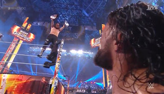 El combate se vuelve caótico, con Solo aplicando un Samoan Spike sobre Owens. Jey se acerca por la espalda de su hermano y éste lo atrapa, dispuesto a ejecutar nuevamente su finisher.