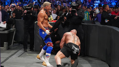 Rhodes sigue atacando a Lesnar en ringiside antes de desmontar las