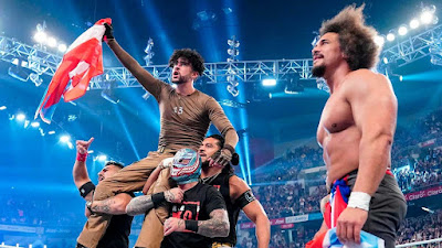 relevo y golpea a Jimmy hasta derribarlo con un suplex. Jimmy se acerca a su esquinero y Solo se da el relevo. Sikoa mira a sus hermanos, que no tienen nada que objetar.